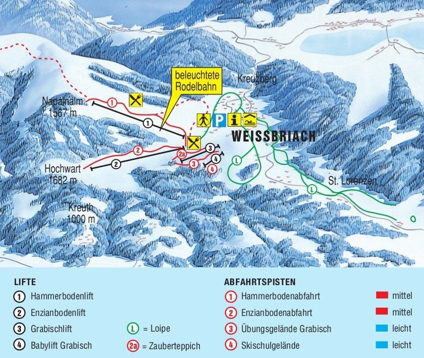 Are you looking for information about the current snow conditions? Updated weather forecasts for the next few days for Weißbriach im Gitschtal can be found here. Often there is also the possibility to view the area via webcam. Further, the active lifts for the ski area of Weißbriach im Gitschtal, as well as as the current snow levels on the mountain and in the valley are shown. The diagram also displays a comparison to the previous year's snow levels and supplies an overview for the entire season in Weißbriach im Gitschtal.