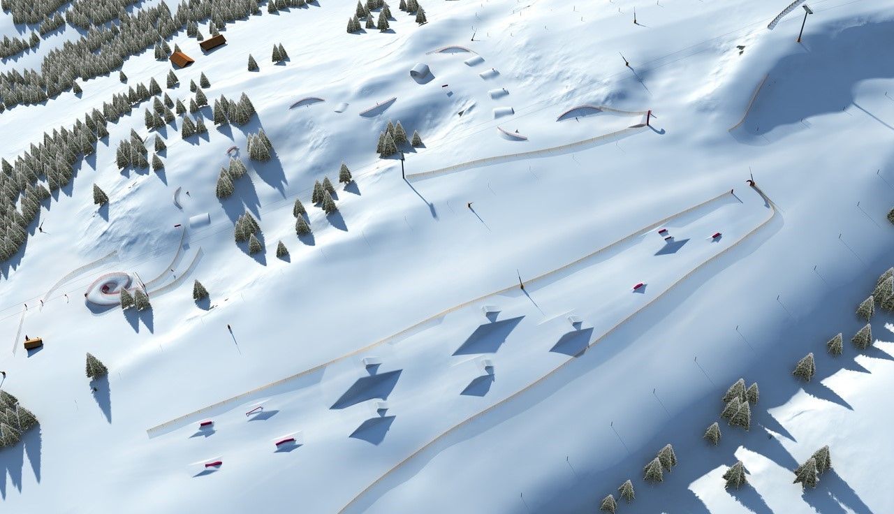 The "Crystal Peak" is located directly in the Fellhorn ski area and offers an easy kicker line as well as simple obstacles such as butter boxes. It is ideal for anyone who wants to gain their first freestyle experience or improve their skills bit by bit.