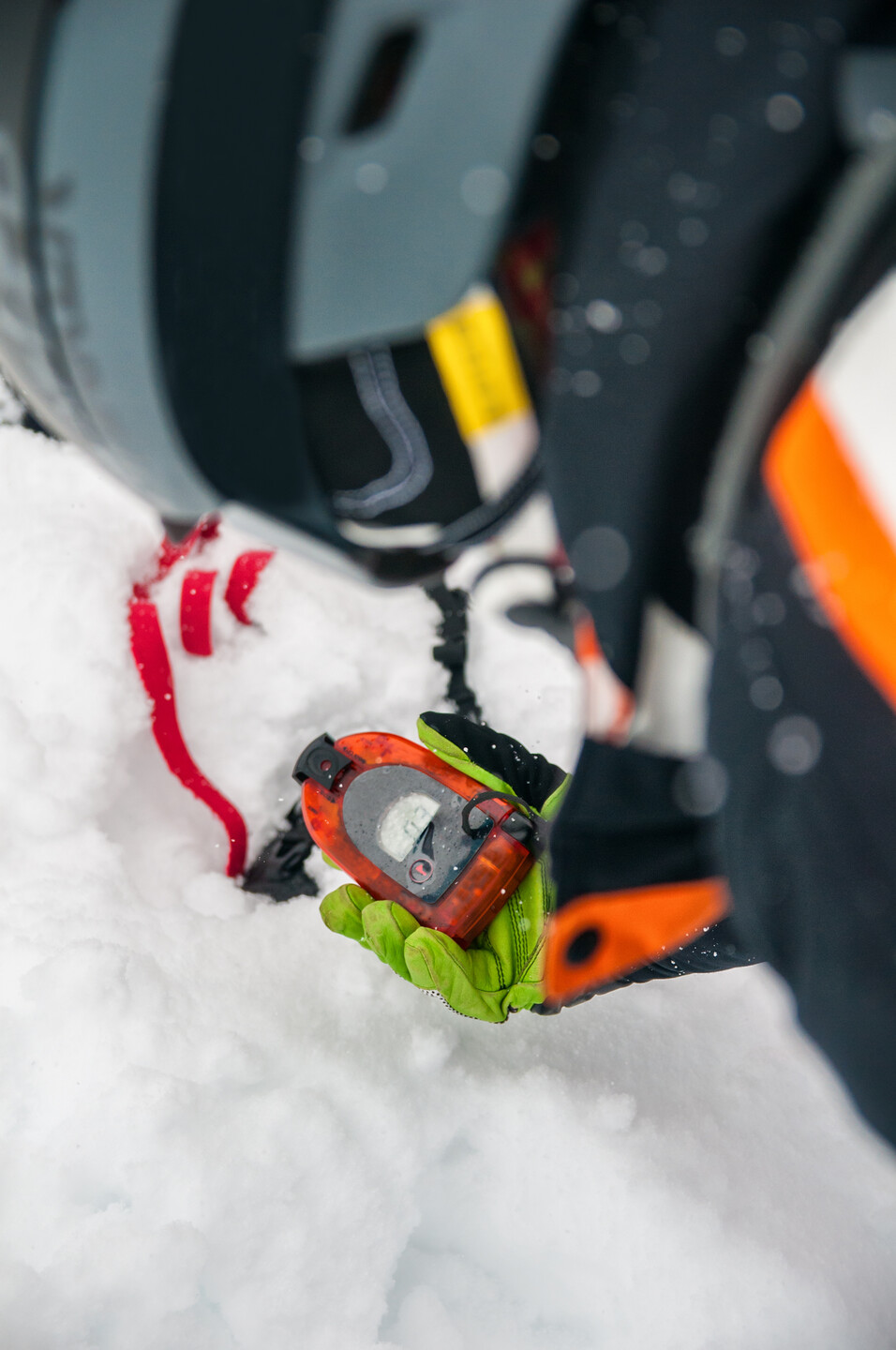 An avalanche transceiver (LVS) emits signals that are used to locate people buried in an avalanche. Before using an avalanche transceiver, the owner should understand how it works and practise regularly so that they can act quickly and efficiently in an emergency. Modern devices have a range of 40 to 80 metres.