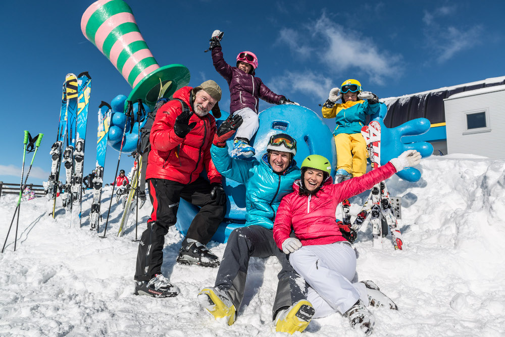 The mascots of the ski resorts offer an unusual motif with recognition value. The Katschberg, for example, has posted the cheerfully laughing Katschi at its photo point. The blue heart greets friendly with its striped hat next to the mountain station of the Tschaneckbahn on the Katschberg.